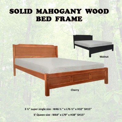 HANNA桃花心木实木超单/大号床架,樱桃木和胡桃木色