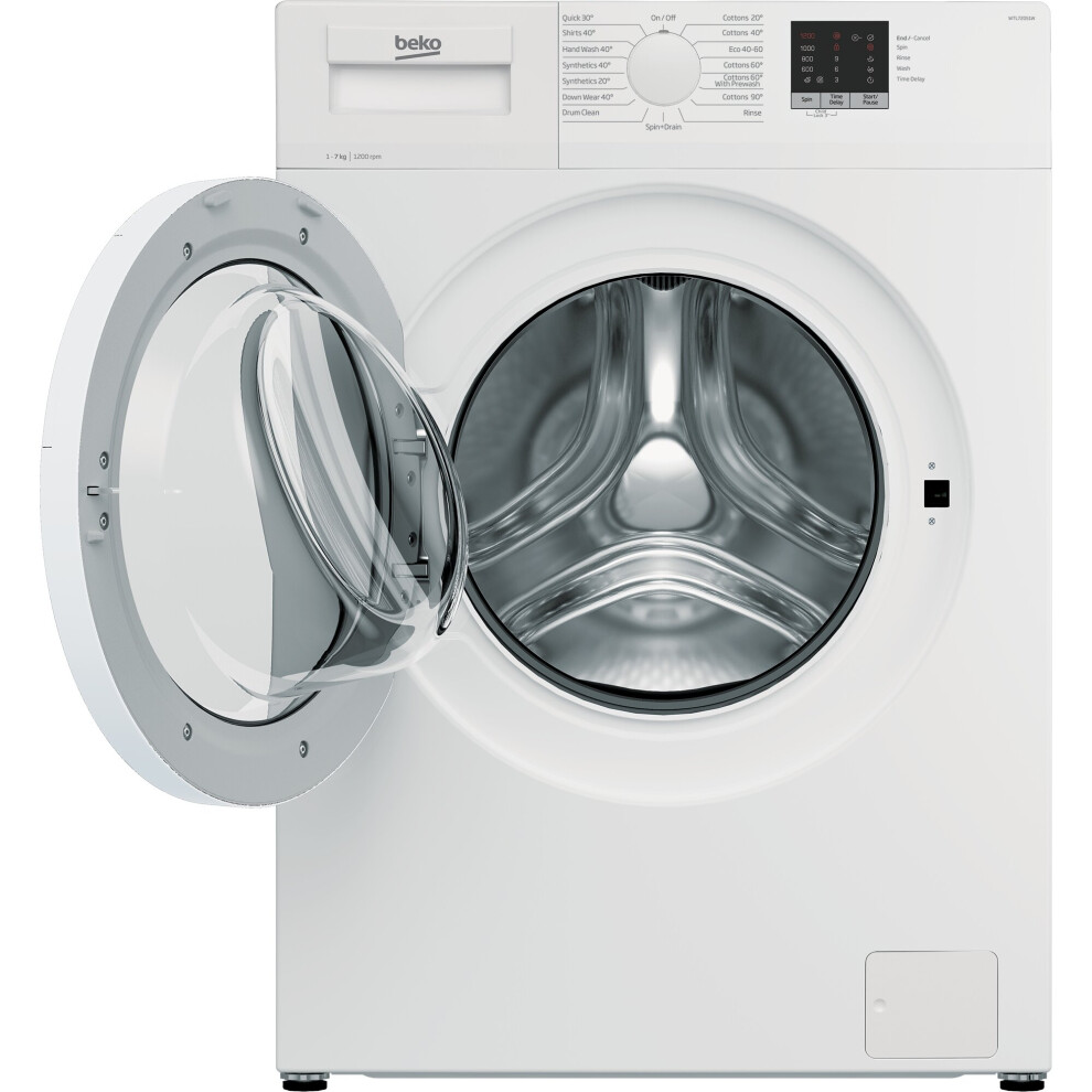 This Beko WTL72051W washing machine can wash a full 7kg load in just 28 minutes, speeding up your everyday wash. Its slim depth makes it easy to install, and LED progress indicator lights help you keep track of each cycle.